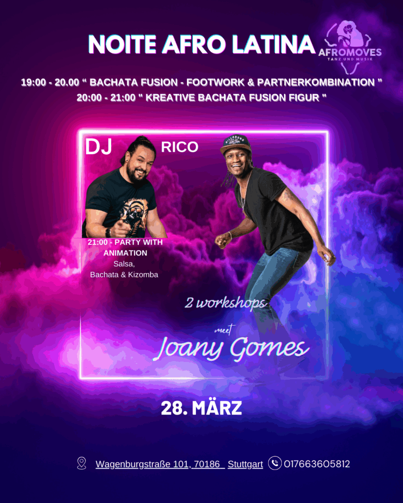 Freu dich auf mitreißende Kizomba-Workshops und unvergessliche Partys – dazu special Salsa- und Bachata-Days sowie viele weitere Highlights! Schau regelmäßig vorbei, damit du kein Event verpasst – wir freuen uns darauf, gemeinsam mit dir zu tanzen!